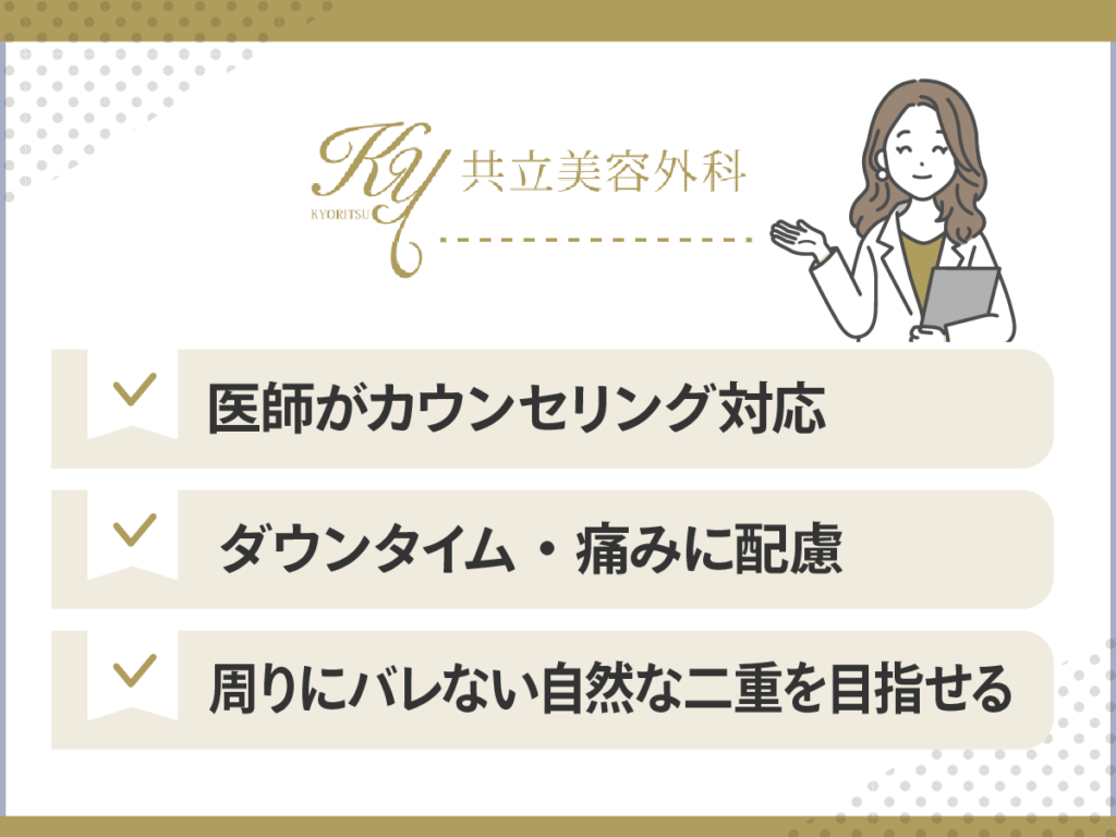 埋没法であればカウンセリング当日に施術を受けたら通院する必要はないですが、切開法は抜糸をする必要があるため、アクセス状況も考慮すると良いでしょう。