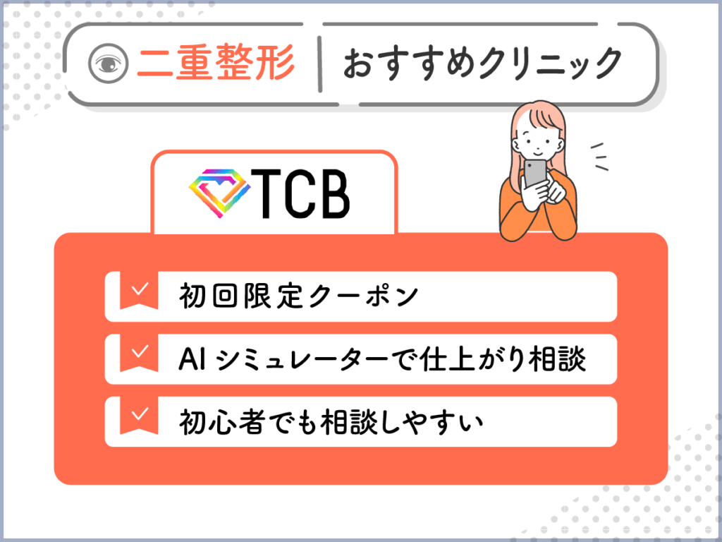 最初に結論を紹介すると、初めて美容クリニックで二重整形・二重埋没の相談をするなら「TCB東京中央美容外科」、二重整形の実績が豊富で比較なら「共立美容外科」がおすすめです。